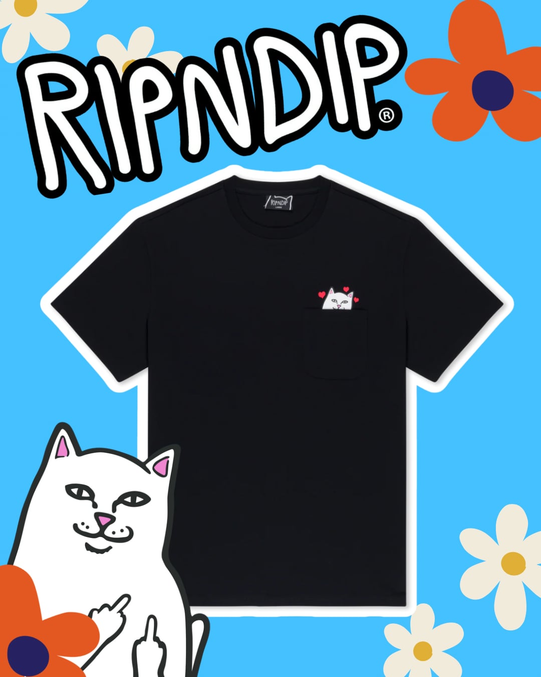【RIPNDIP】NERMAL LOVES POCKET TEE (BLACK WASH)