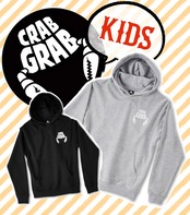 おそらく世界的に有名なロゴ フーディのユース サイズ バージョン。 Crab Grab のロゴが厚くプリントされたヘビーデューティーなフーディ。